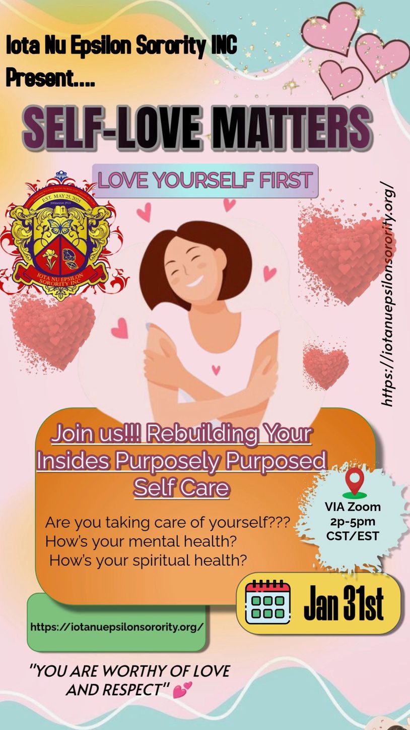 Join Iota Nu Epsilon Sorority, Inc. for a powerful and intentional conversation on self-care, mental wellness, and spiritual health.